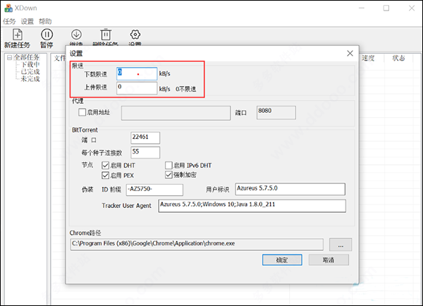 7、支持对下载、上传的速度进行限制,用户可自定义速度