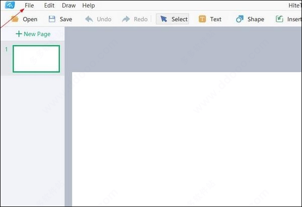 工具栏提供以下功能:打开、保存、撤销、恢复、选择、文本、形状、资源库、课堂活动、思维导图、工具。