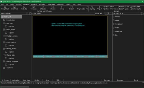 Spark Studio 适用于SparkSource,能够帮助用户进行人机界面的开发,以简单明了的方式来轻松管理项目资源数据,软件包含多主题、多皮肤、多语言等功能,提供各种在设计时需要用到的功能,使用这款软件用户可以轻松设计2D场景。