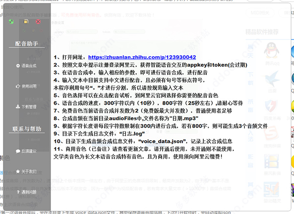在进行第一次语音合成后,会在本目录下生成 voice_data.json文件,其中保存语音合成信息,下次打开软件时,会自动读取json中数据到输入框中,避免用户多次繁琐输入appkey,token,但文本任需自己输入。