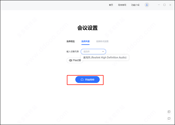 3、直接在电脑安装软件,创建会议就可以添加声音来源