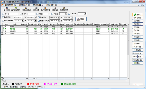 易达磁卡消费管理适用于美容、美发、酒店、商场(可打折、计次、预计时、实时计时、积分、积分兑换等多种会员消费方式)等行业的磁卡消费管理的软件(内含预计时消费模块及实时计时消费模块,更适合计时消费的娱乐场所,同时系统中集成了会员积分管理,会员可积分、可积分兑换)。后台使用ACCESS小型数据库和SQL大型数据库。