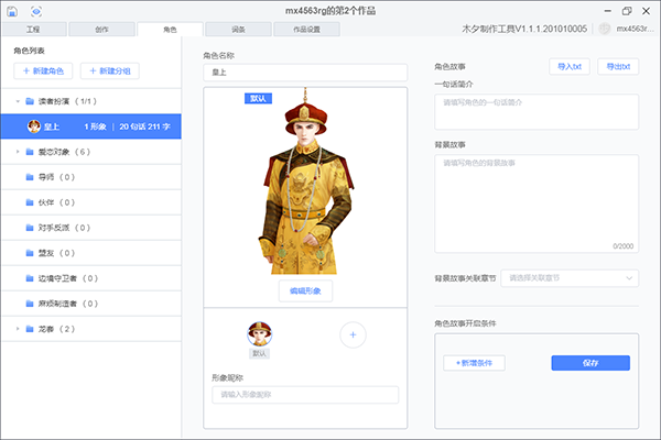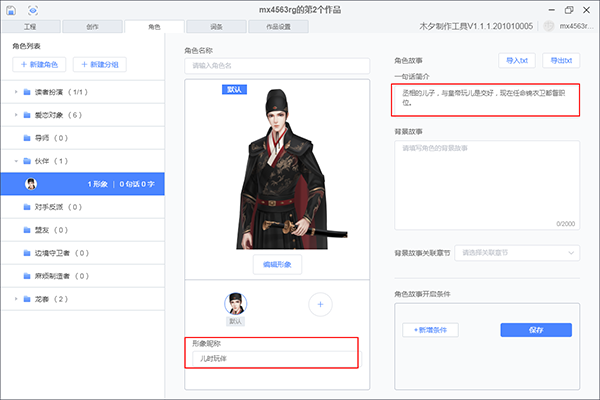 3、支持添加形象昵称、编辑形象、角色简介等;