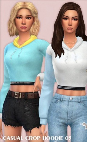 模拟人生4休闲露腹长袖带帽连帽衫MOD能够为模拟人生4这款游戏添加一件很好看的连帽衫,适用于女性人物角色,这件连帽衫是短款露肚子的款式,袖子是长袖,采用拼接颜色的设计,衣服看起来比较休闲,包含多种颜色可供玩家自由选择。