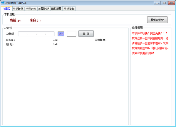 小布地图工具为用户提供丰富的地图测量功能,能够详细查找地图信息和各种位置,支持IP定位和坐标转化,用户可以在软件中输入两个地图点后准确地同时测量距离,可以拾取地图上的坐标,软件通过百度地图接口运行,功能强大,测量精准,非常的非常实用。