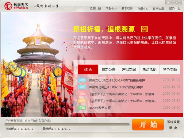 慈恩天下电脑客户端运用3D技术,继承和发扬先祖圣贤们几千年来通过实践总结出的方式,为有祭拜逝者需求的用户提供一个更加真实的体验环境,让祭祀不再受时间地方等限制,让用户能够非常便利的在网络上孝敬亲族、敬祖上香。