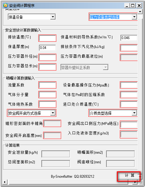 安全阀计算程序能够对保温设备和非保温设备的安全阀安全泄放量等参数进行计算,帮助用户在不同条件下的泄放数值及碰嘴面积等数据,将对应的数据输入其中,即可完成计算工作,计算的准确率很高且速度快,节省了大量的时间,适用于从事安全阀行业的用户。