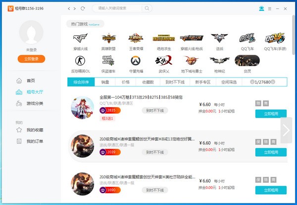 租号云官方版支持国内外多种热门游戏账号租赁,如绝地求生,CF,lol等
