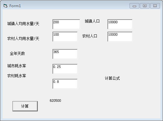 一、输入城市人口、农村人口以及平均用水量。