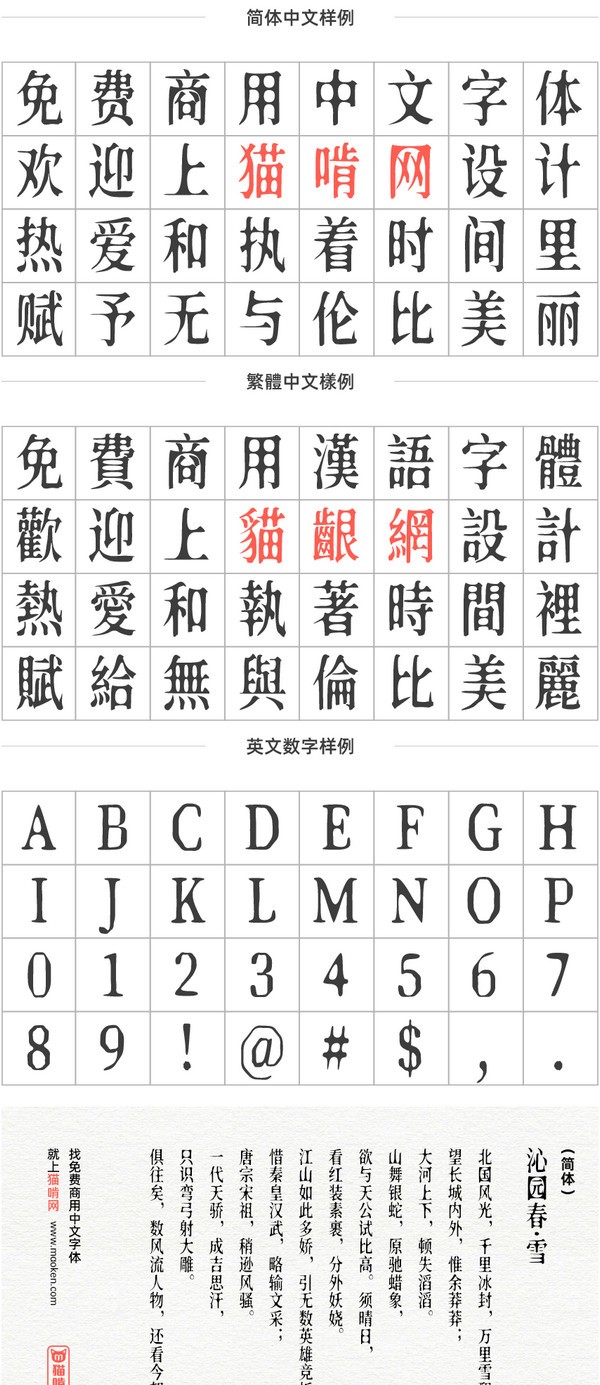 字体的作用不仅是能给读者带来不一样的视觉感受,还在于它能够更好的表达出环境的氛围和文字的基调情感,新愚公沧桑体就是非常多的人都在使用人用的一款充满岁月斑驳沧桑感的字体,该字体是基于思源宋体加入随机扭曲效果改造而来的,很有特色,具体效果可以参考下图,喜欢的话可以下载使用。