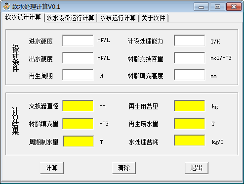 软水处理计算器可以帮助用户快速计算软水设计、软水设备运行、水泵运行的数值,软件界面清晰直观,使用方法也非常简单,只需要选择要计算的功能,然后输入对应条件,点击计算即可,计算结果准确,有需要的小伙伴可以下载使用哦~
