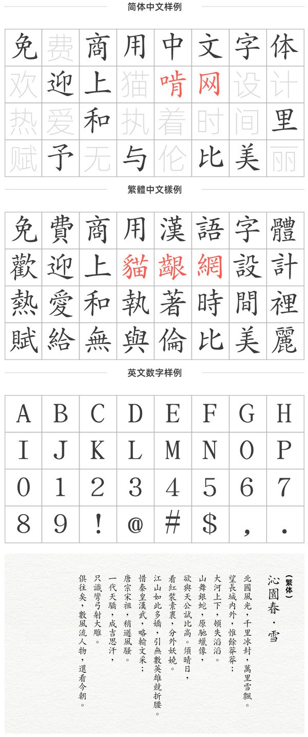 文鼎PL中楷体十分优美,使用范围十分广泛,这款字体舒展,笔画张弛有度,结构清丽,整体效果非常出色,主要以繁体字形为主,支持所有用户下载使用,支持免费商用,文本装潢、信息展示、网页设计等多种合法场景均可使用这款字体。
