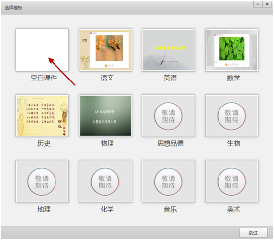 1、新建空白课件。双击畅言课件制作工具,在模板页面点击“空白课件”。