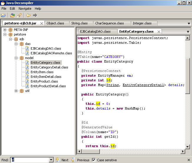 JD-GUI支持众多Java编译器的反编译,是一个功能十分强大的JAVA反编译工具,用户可以利用它对整个Jar文件进行反编译,并本源代码可直接点击进行相关代码的跳转,此外软件还提供了eclipse的高亮着色功能,多文件标签浏览,快来试试吧!