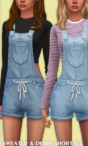模拟人生4毛衣牛仔吊带短裤MOD专为模拟人生4游戏中的女性角色打造,补丁的作者在游戏中制作了一条非常有特色的背带短裤,短裤里面的内搭搭配的是毛衣,材质是牛仔的,款式设计的十分休闲,腰部还带有抽绳系带,穿上的效果很不错。