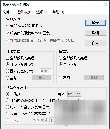 3、支持常规选项:清除 AutoCAD背景色、按实体范围裁剪WMF图象、在 TILEMODE值为0时合并图纸空间和视口