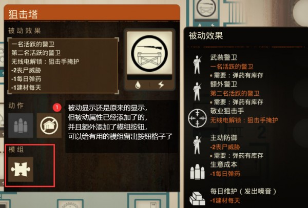 最后还添加了模组插件按钮,这样狙击塔也可以安装模组了。