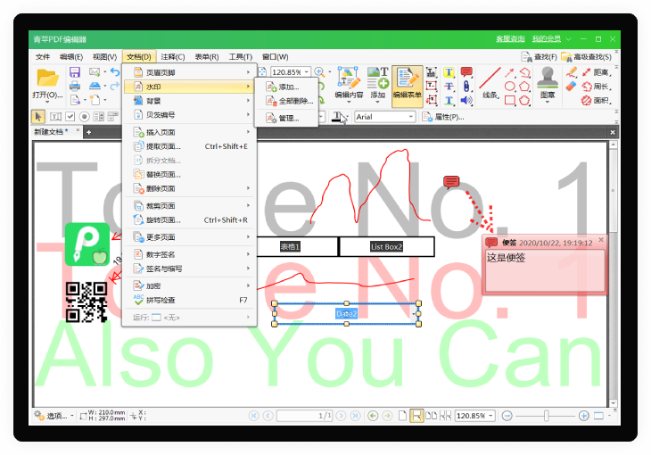 青苹PDF编辑器为用户提供非常全面的PDF功能,包括阅读、编辑、添加水印等等,能够很好地满足用户的PDF编辑需求,软件界面简洁美观,操作起来也十分简单,常用的功能都罗列在工具栏中,用户可以一目了然,从而轻松地编辑PDF文档。