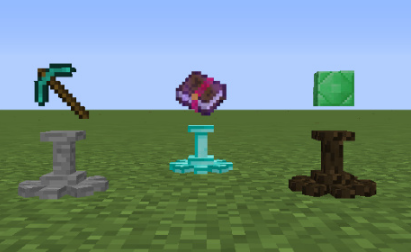 我的世界物品基座悬浮展示MOD,作者在游戏中制作了10中全新的基座道具,以便玩家们将物品放在上方展示,具体的有石基座、木基座和钻石基座,具体效果如下图,喜欢的玩家可以下载使用,MOD适用于游戏版本v1.12.2,需要Forge 14.23.5.2768安装。
