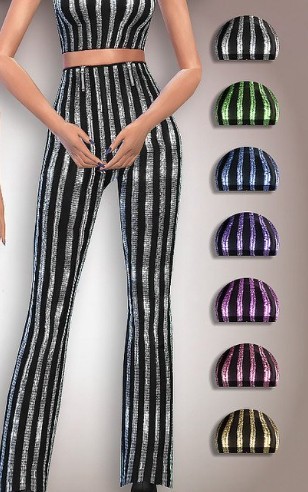 模拟人生4亮片高腰喇叭裤MOD,这是一条专为游戏中的女性角色制作的喇叭裤,裤子是高腰的设计,超级显腿长,不过最吸睛的应该是上面印着的亮片竖条纹了,让裤子看起来非常闪亮,还有多种颜色可以选择,蓝色、粉色、紫色、绿色随心换,喜欢的话就赶紧下载吧~
