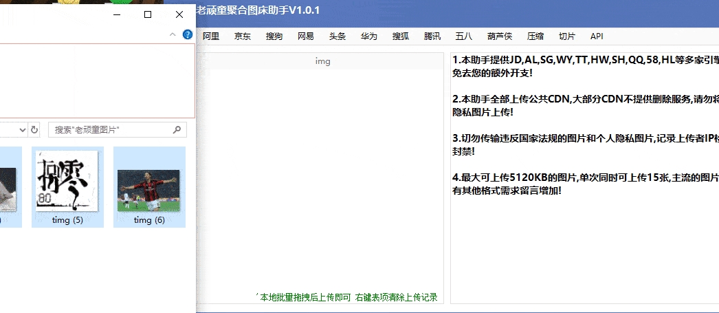 2、本助手全部上传公共CDN,大部分CDN不提供删除服务,请勿将含有您个人隐私图片上传!