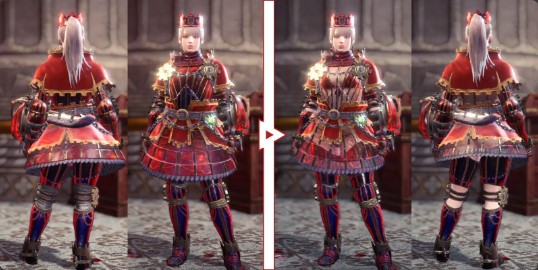 怪物猎人世界冰原Kaiser Gamma装甲修整MOD能够对怪物猎人世界冰原游戏中的服装外观进行修改,玩家安装补丁后可以获得炎王龙服装的魔改外形,现在这套外观看起来是洛丽塔风格的小裙子,非常的漂亮,制作得十分精致,效果可以参考下面的图片。