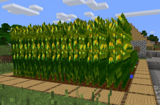 我的世界玉米MOD,作者在游戏中新添了一种全新的植物——玉米,具体效果如下图,玉米种子可以在村庄被发现,也可以打草获得,成熟后高度有3个方块,不仅可以用来喂鸡还可以制作出素食牛排,和真牛排相似度极高,还是蛮不错的,喜欢的玩家可以在本站下载哦~
