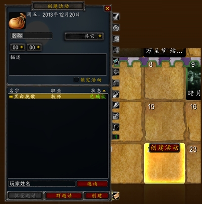 群主可使用《魔兽世界》自带日历功能,发布相关活动信息。