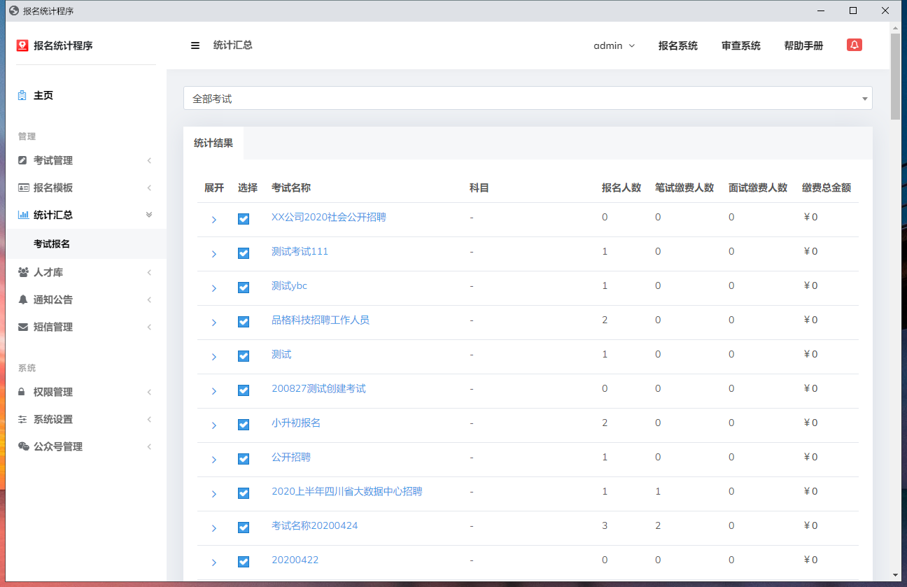 报名统计程序适用于各类需要通过报名表单方式来进行信息收集的业务,应用于各类报名业务流程中的数据统计汇总,可针对单一报名或多个报名统一进行汇总数据统计,还可对报名下各个节点进行独立统计,并生成详细的统计报告。