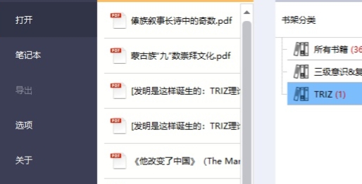 支持打开PDF和EPUB两种格式的电子书,自动导入书籍目录,还能自定义阅读书签。