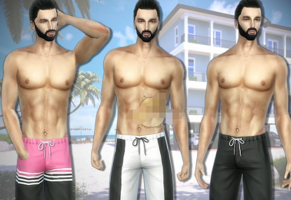 模拟人生4男士帅气夏季泳裤MOD适用于模拟人生4的男性人物角色,可以在游泳的场合穿着,补丁的作者在游戏中制作了一系列很好看的夏季泳裤,泳裤是运动休闲风格的,腰间带有系带的设计,包含多种不同的颜色和款式,看起来效果都还不错。
