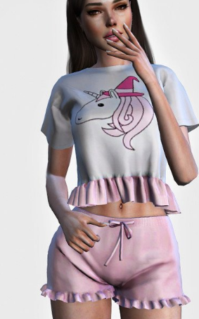想要在模拟人生4中添加一件新的服装外观吗?来看看小编为大家准备的这款模拟人生4粉色独角兽花边上衣MOD吧!这款补丁的作者在游戏中制作了一件很好看的上衣,非常适合女性角色使用,上衣是带有花边的短款T恤,上面还带有一个可爱的独角兽印花图案。