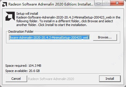1、解压后得到AMD Radeon 2020原程序,运行后即可出现安装包提取程序,点击Install即可提取安装包;