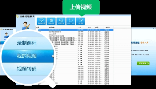 录制及转码成功的视频在“我的视频”中选中并点击“上传视频”,视频即上传至平台网速越快上传速度越快