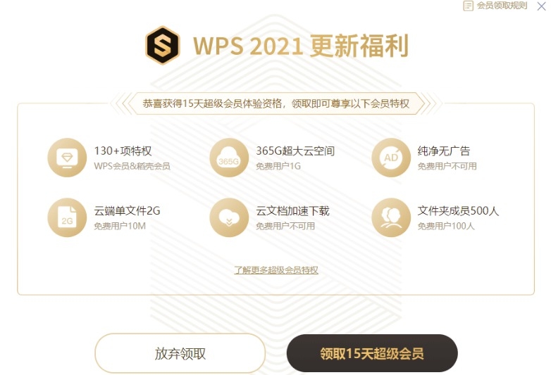 WPS Office是非常多的人都在使用人用的一款适用人群非常广的办公软件,基本上是手机电脑的装机必备工具,日常办公、学习都会用到它,本次带来的WPS Office 2021 Beta就是WPS最新推出的2021年度office办公套件尝鲜版,功能丰富齐全,辅助您高效办公,现在登录还有机会获得15天超级会员哦!