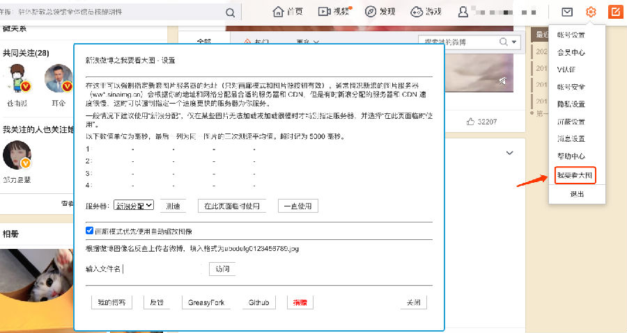 新浪微博之我要看大图插件专为新浪微博看图功能制作,使用这款插件之后,现在用户在微博上面看图的时候可以将图片进行放大了,操作很简单,用户只需将鼠标放在缩略图上再点击工具条即可实现大图浏览,让用户可以看得更加清楚!