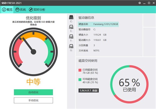 1、SSD Fresh 2021功能强大,该工具针对SSD固态硬盘进行优化,有效清理并提高软件固态的使用效率,延长SSD的使用寿命。
