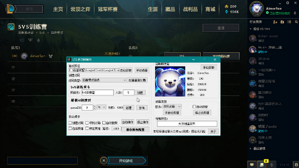 LOL多功能操作是一位网友利用拳头官方公开的接口开发制作的大厅拓展插件,有了它你就可以创建5V5训练模式、秒选英雄,开启隐藏的模式、自动接受对战等,使用方法也非常简单,启动到游戏大厅后点击自动获取游戏路径,然后使用自己需要的功能即可。