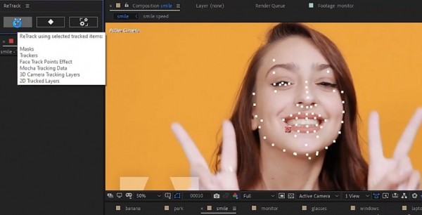 AEscripts ReTrack是一个AE多功能视频跟踪修复脚本,将所有类型的AE跟踪数据加载到Retrack中,包括3D摄像机跟踪实体,跟踪蒙版,跟踪点,面部跟踪数据和Mocha数据,还提供了“编辑”工具选择和编辑跟踪的数据,帮助您可以非常快速地调整和优化跟踪的项目。