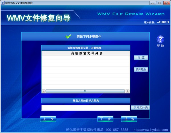使用宏宇WMV复向导,开始WMV据修复