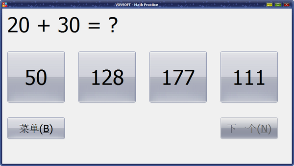 VovSoft Math Practice是非常多的人都在使用人用的一款非常非常实用给小孩数学练习软件,面向希望帮助孩子迈入数学世界第一步的父母,它提供了相当简单的教学工具和基本界面。具有加,减,乘,除之间选择。单击其中之一后,数学练习将自动启动,通过在三个不同级别之间进行选择来选择难度。