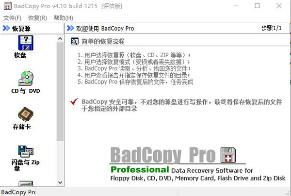BadCopy pro功能强大,专业非常实用,当我们的数据或者文件因为各种原因损坏打不开、丢失的时候,我们就可以使用这款软件来帮助我们恢复数据,从而将我们的损失降到最低!软件支持所有格式的文件,操作很简单,照片、视频等数据都可以用它来恢复!