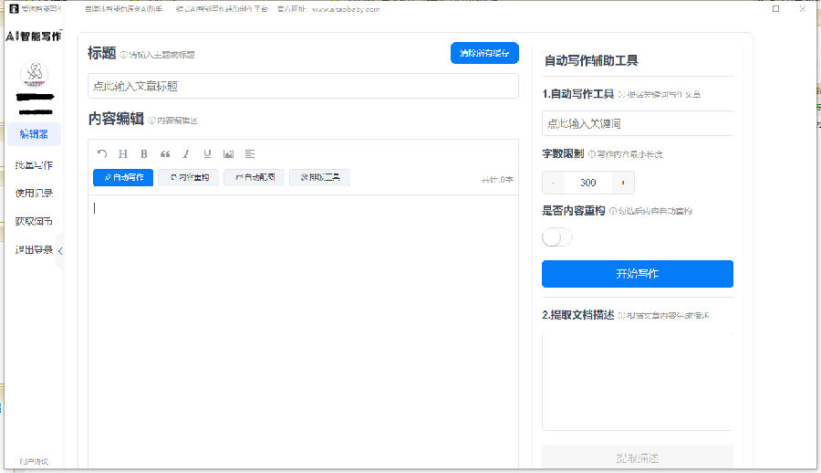 软件可以根据用户给定的关键词自动创作文章,并且允许用户设置文章的字数,生成的文章语句通顺课可以直接修改使用。