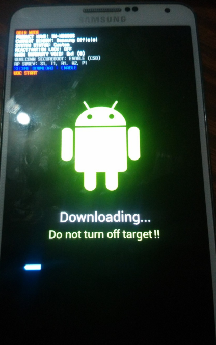 1、打开ODIN 载入刷机包,导入您提前下载好的刷机包。将手机关机,同时按住(音量下键+HOME键+电源键)5秒左右