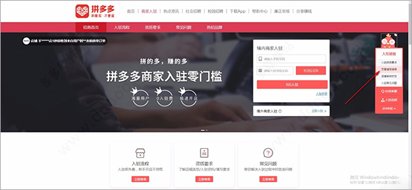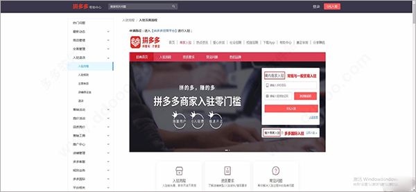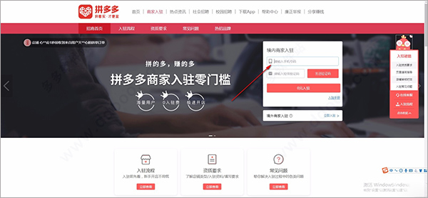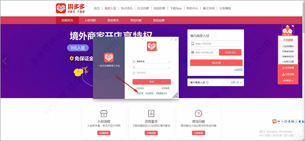 2、用户如果还在不是拼多多的商家,可以点击登录界面的0元开店进入到官网;
