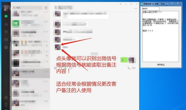2、另外此类的软件论坛之前有也有过,但是有个不好的地方,就是如果需要经常根据情况给顾客更改备注,那更改了给顾客的备注之前备注的内容就无法读取出来!所以稍微改改了思路,这个是根据微信号去判断的,微信号是唯一不变的(好像现在1年可以改3次微信号,但是这种几率应该可以不计吧,哈哈哈!)