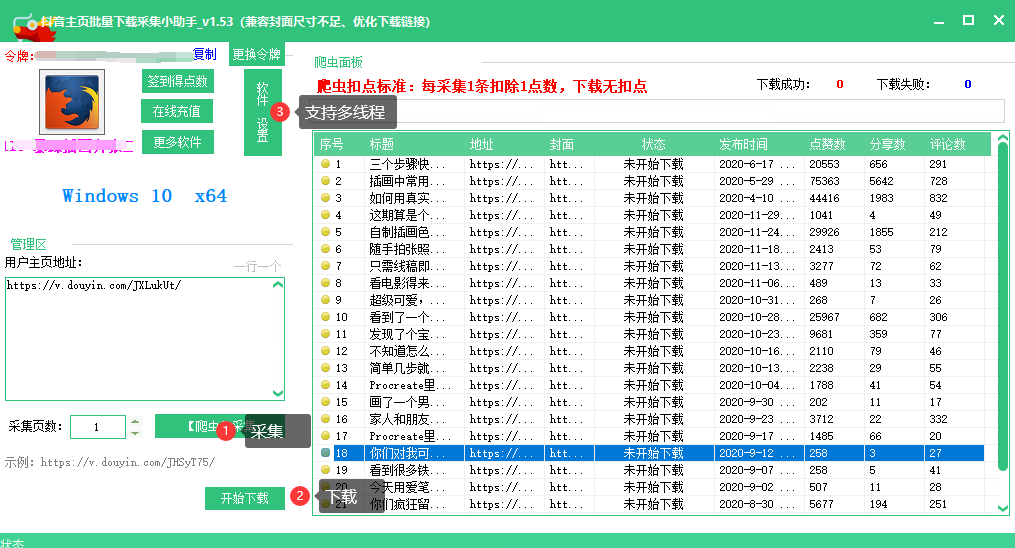 抖音是现在非常流行的短视频软件,非常多的人都在使用小伙伴们都喜欢在闲暇时间刷刷抖音,看到自己喜欢的视频想下载下来时会发现有很大的水印,可以使用小编带来的这款抖音主页批量去水印下载采集小助手,能够帮助用户下载自己喜欢的抖音短视频,同时去除了水印,支持批量下载!
