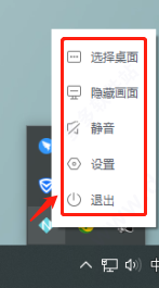 3、接着呢许多人好奇人工桌面鹿鸣怎么互动?先右击右下角的图标,点击“选择桌面”;