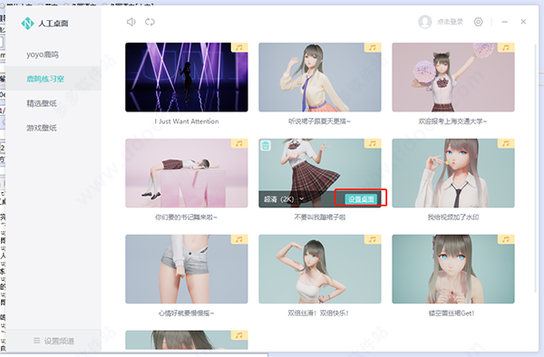 人工桌面电脑版是由米哈游推出的一个以3D美少女为主题的动态桌面壁纸软件,这里有成千上万款精美的免费壁纸等你来选择,各种类型的应有尽有,大家也可以自由的DIY壁纸和主题,平台每天都会实时更新全新的壁纸,用户们也不用担心审美疲劳哦!