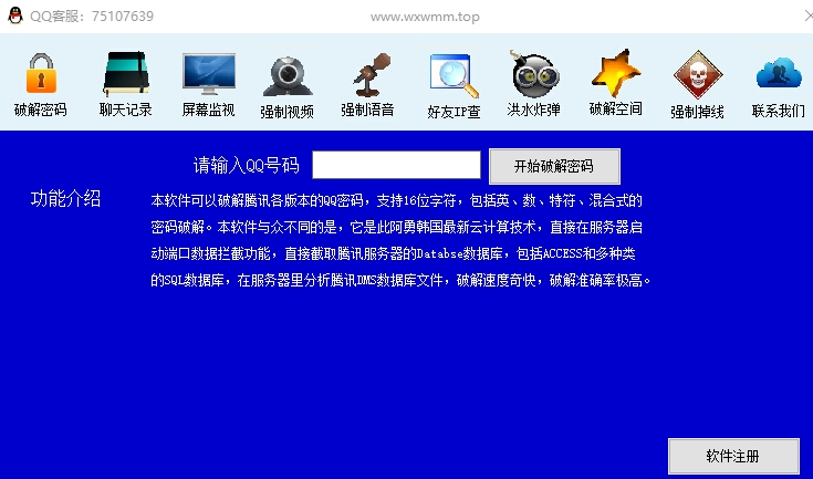 黑科技QQ破密码免费能够将QQ号码的密码出来,软件非常的强大,不管你的密码设置的多么有难度,都能通过这款软件进行,包括英文、数字、字符等混合密码,操作很简单,只需将QQ号码输入即可进行,忘记密码时可以使用,但是不要用作非法操作!